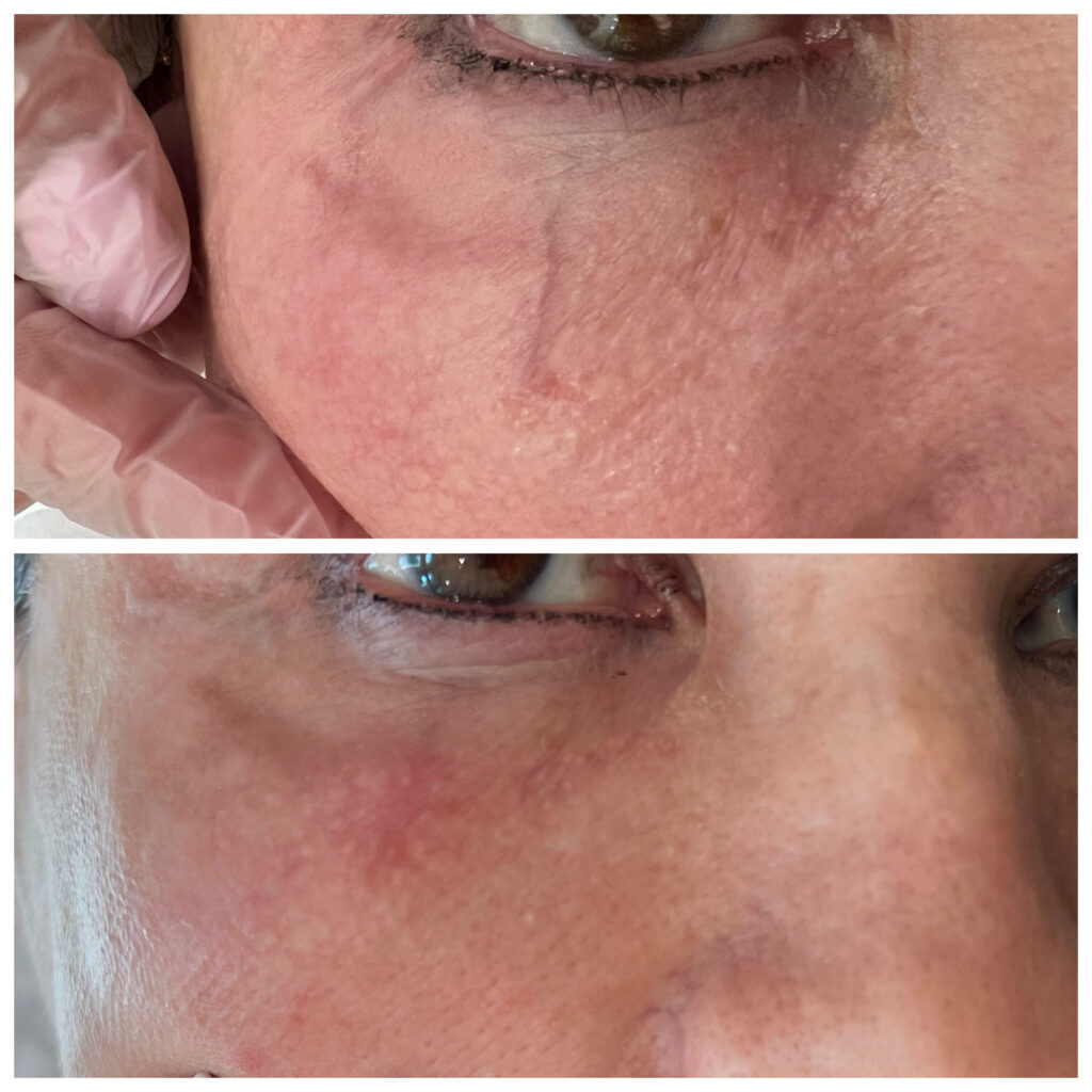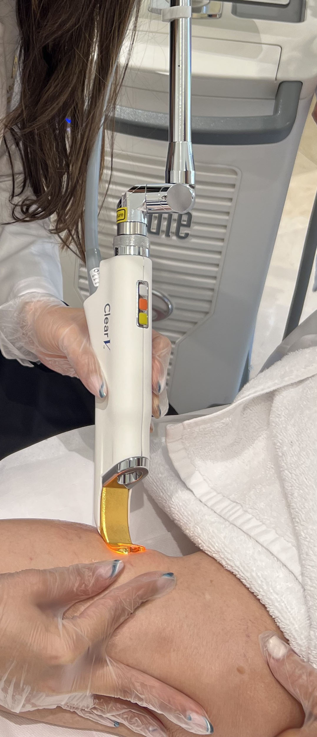 ClearV eliminates target vessels without damaging the skin. It does so by applying targeted heat to clear away broken capillaries, spider veins, vascular lesions, skin discoloration, and more.